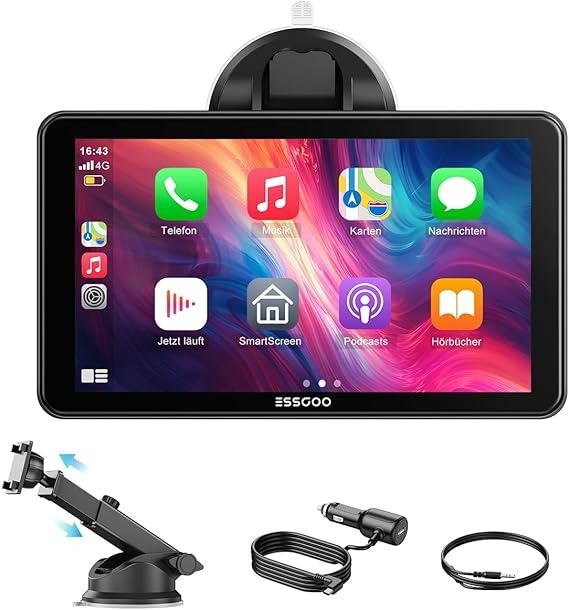 Leistung & Kartenmaterial: Nutzt Smartphone-Apps wie Google Maps.Display & Benutzerführung: Portables 7-Zoll-IPS-Touchscreen-CarPlay Display.