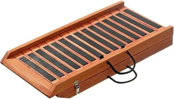 Pflege & Haltbarkeit: Robustes Holz mit Stahlbeschlägen, dank geringem Gewicht und Tragegriff leicht zu verstauen und zu transportieren.