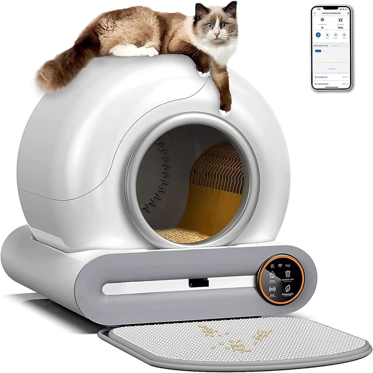 Automatisierungs- & Reinigungsfunktion: Bietet automatische, zeitgesteuerte, manuelle Reinigung.Kapazität, Größe & Komfort: Fasst 90L, für Katzen bis 10kg.