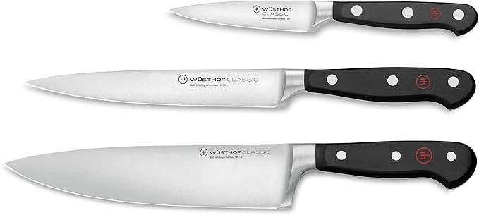 Set-Inhalt: Spick-, Fleisch-, Kochmesser enthalten.Material & Verarbeitung: FRIODUR Klinge, aus Spezialstahl geschmiedet.